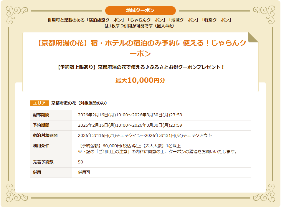 クーポンは10,000円と5,000円の2種で、共に数量に制限がありますので、ご予約はお早めに!